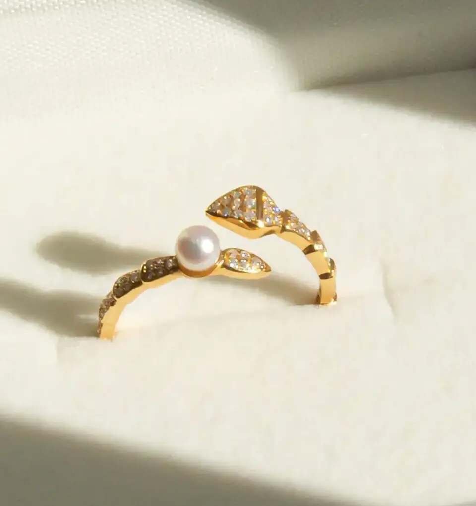 Bague Serpent or jaune 750/1000e avec Perle de culture