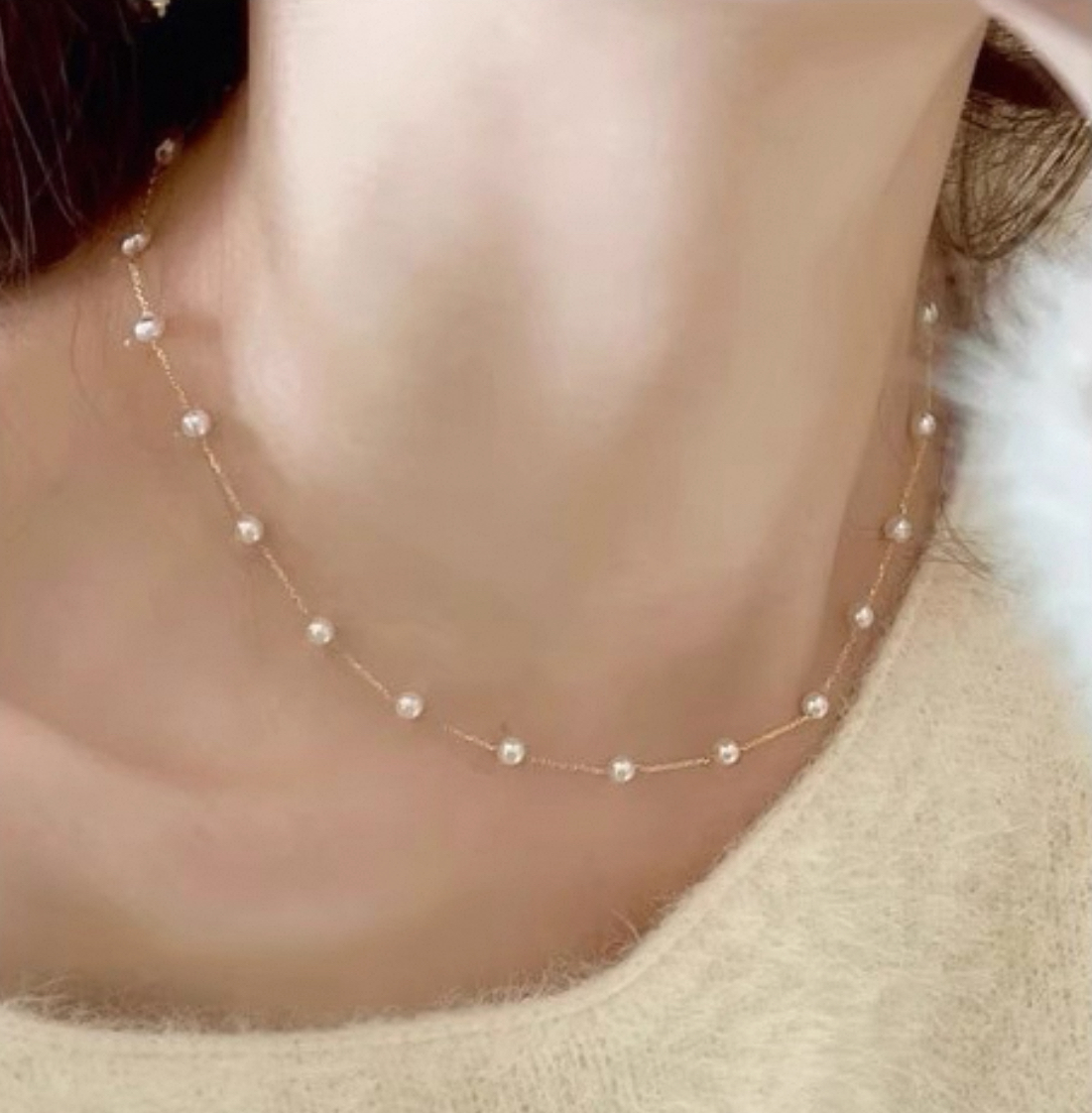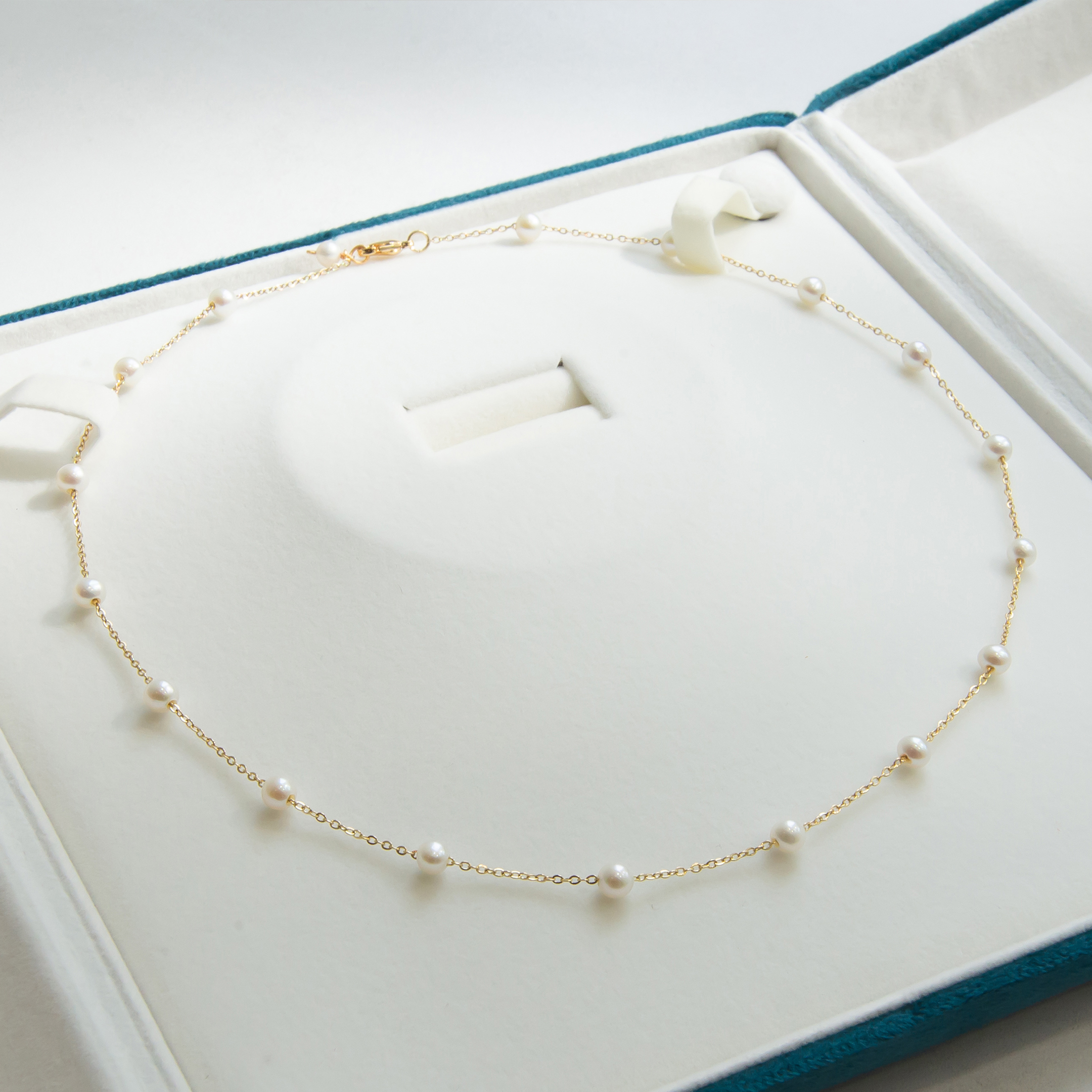 Collier Élégant en Plaqué Or avec 19 Perles de Culture 4-5mm