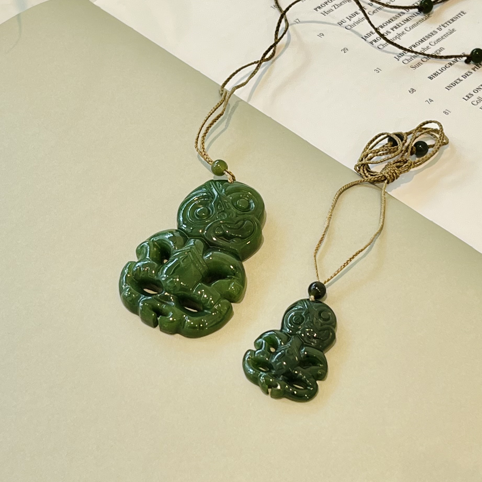 **Collier en Jade en Forme de Tiki – Élégance et Spiritualité**